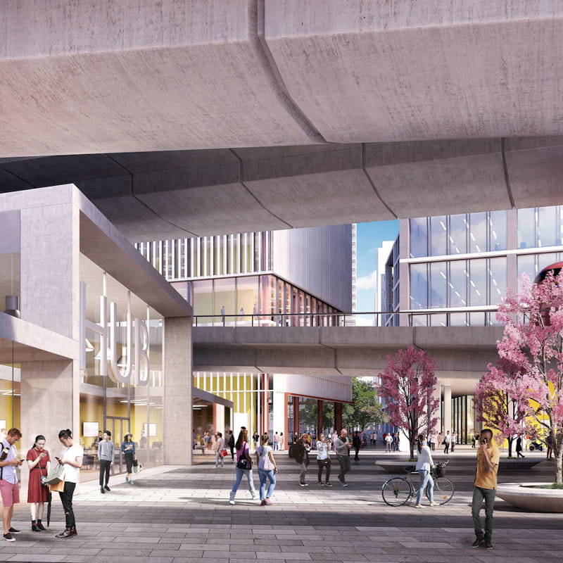 Such an ambitious project comes with significant delivery challenges. The campus is constructed beneath the elevated A40 Westway, around a public realm, and alongside existing occupied buildings, with pedestrian and vehicle access required throughout construction. Addressing these constraints early was essential.