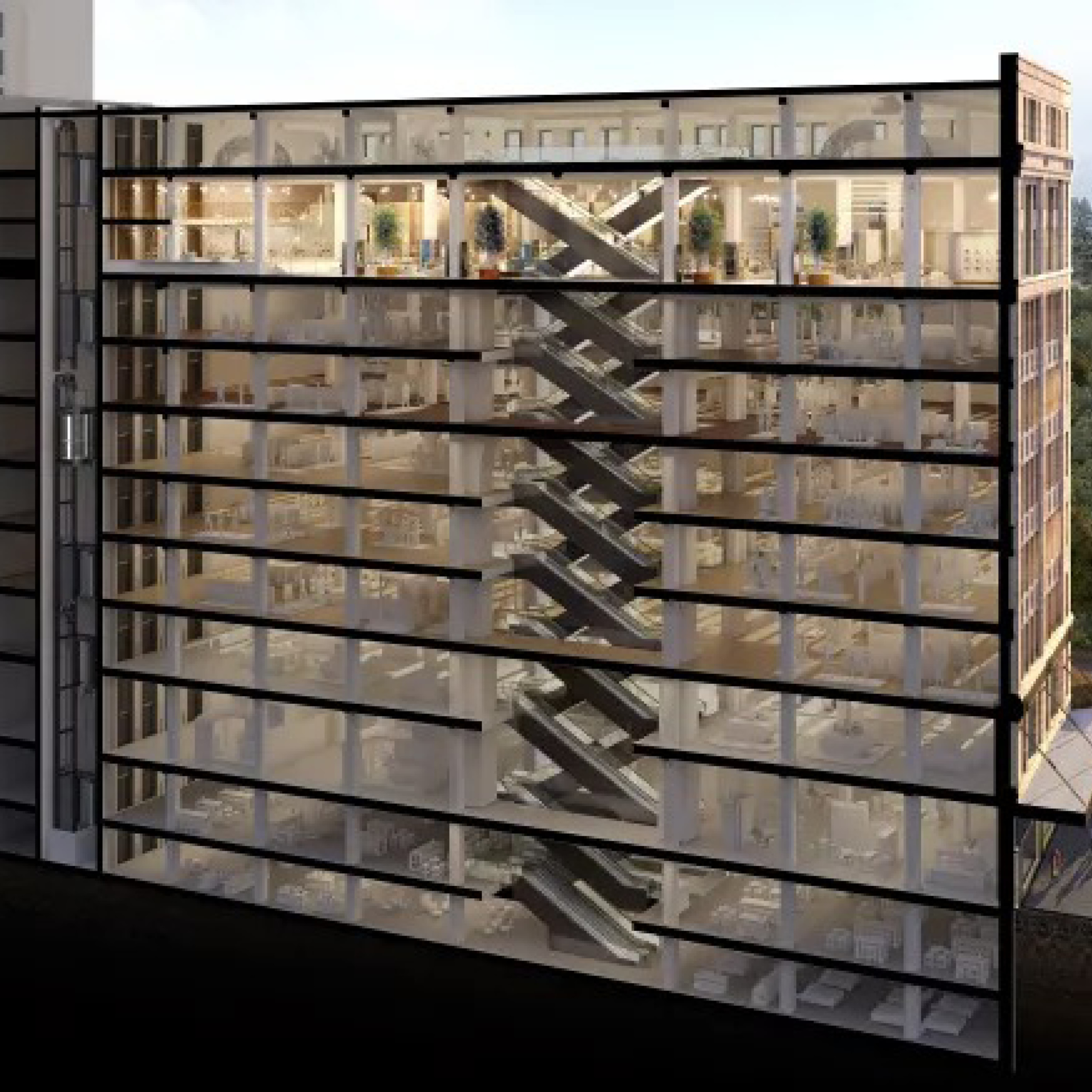 • A completely new set of passenger lifts which will service Basement to Level 9. The new lifts utilise the existing building shafts and required structural modifications to existing footings to accommodate. The lifts are installed in stages to maintain the functionality of the retail store throughout construction.
